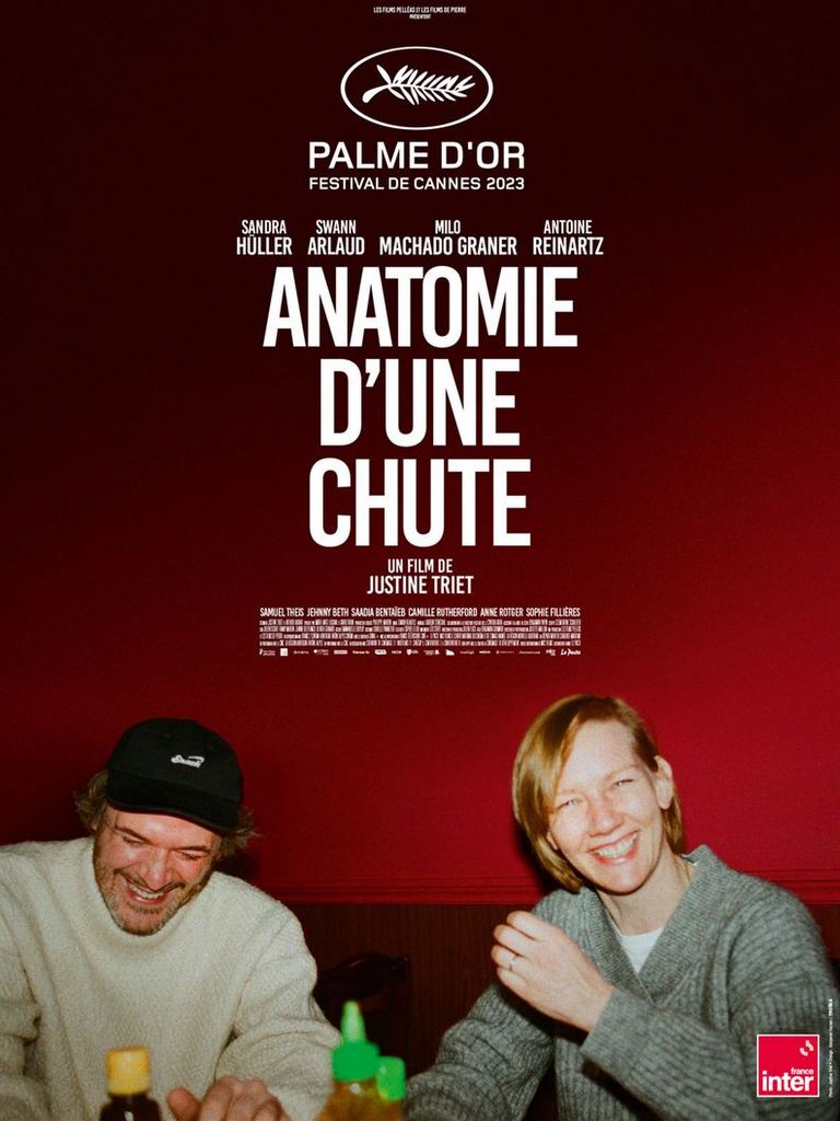 d'après une idée originale de l'auteur long-métrage écriture du scenario avec Arthur Harari réalisation production : LFP – LES FILMS PELLEAS et LES FILMS DE PIERRE avec Swann Arlaud, Sandra Hüller, Milo Machado Graner, Jehnny Beth, Antoine Reinartz.. Palme d'Or – Festival de Cannes 2023 meilleur film en langue étrangère - New York Film Critics Circle 2023 meilleur film international - British Independent Film Awards (Londres) 2023 meilleur film international - Gotham Awards (New-York) 2023 meilleur scénario - Gotham Awards (New-York) 2023 meilleur film - European Film Awards (Berlin) 2023 meilleure réalisation - European Film Awards (Berlin) 2023 meilleure actrice (Sandra Hüller) - European Film Awards (Berlin) 2023 meilleur scénario - - European Film Awards (Berlin) 2023 meilleur montage (Laurent Sénéchal) - European Film Awards (Berlin) 2023 meilleur scenario – Golden Globes (Los Angeles) 2024 meilleur film en langue non anglaise – Golden Globes (Los Angeles) 2024 prix du meilleur film étranger – Critics Choice Awards 2024 meilleur film – prix Lumières de la Presse internationale (Paris) 2024 meilleur scenario– prix Lumières de la Presse internationale (Paris) 2024 meilleure actrice (Sandra Hüller) – prix Lumières de la Presse internationale (Paris) 2024 meilleure image– prix prix Lumières de la Presse internationale (Paris) 2024 prix Jacques Deray 2024 meilleur scenario original – Bafta (Londres) 2024 meilleur film européen – Goya 2024 meilleur film, meilleure réalisation, meilleur montage,meilleur scenario original – César 2024 meilleur acteur dans un second rôle (S Arlaud), meilleure actrice (S Hüller) – César 2024 meilleur scenario original – Oscar (Los Angeles) 2024 meilleur film européen – Goya (Espagne) 2024 meilleur film international – Davi di Donatello (Italie) 2024