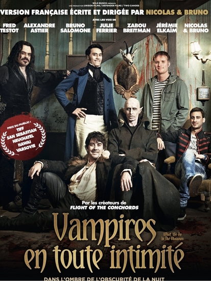What we do in the shadows de Jemaine Clement et Taïka Waititi long-métrage écriture et direction de la Version Française avec Nicolas CHARLET production : WILD BUNCH avec Fred Testot, Alexandre Astier, Bruno Salomone, Julie Ferrier, Zabou Breitman, Jérémie Elkaïm, Nicolas Charlet & Bruno Lavaine sortie le 30 octobre 2015